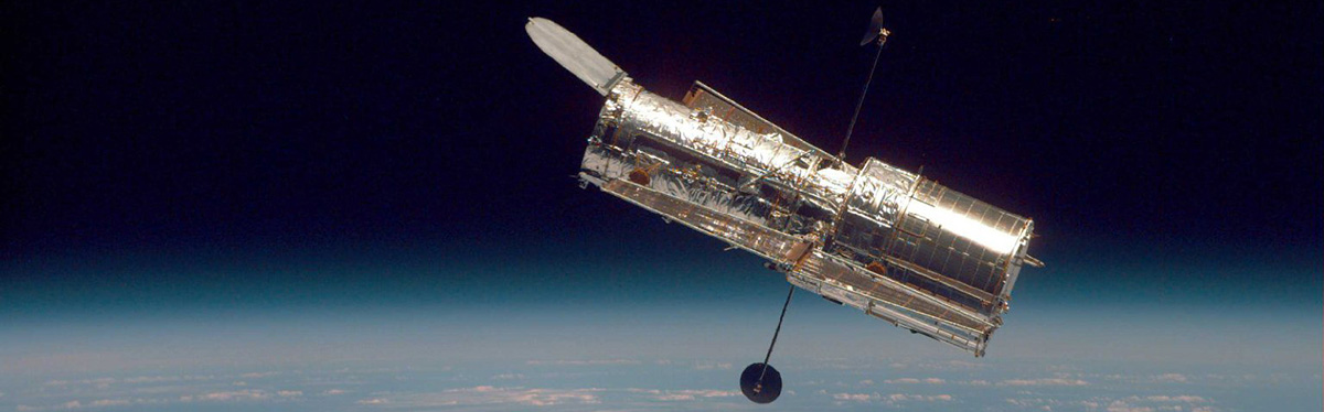 Le télescope spatial Hubble a été lancé le 24 avril 1990 et placé sur une orbite circulaire de type LEO inclinée à 28.5 degrés, à 559km d'altitude par la mission sts-31 de la navette Discovery. Le télescope fait une rotation terrestre en 96min.