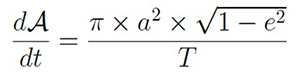 La vitesse aréolaire peut alors s'obtenir en divisant l'aire balayée par la durée nécessaire pour la balayer, c'est à dire la période t. On obtient donc cette expression plus précise de la deuxième loi de Kepler: