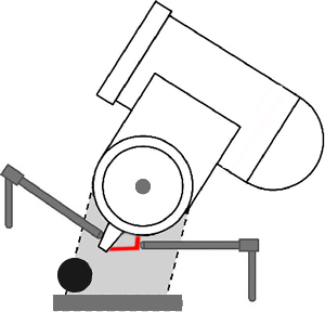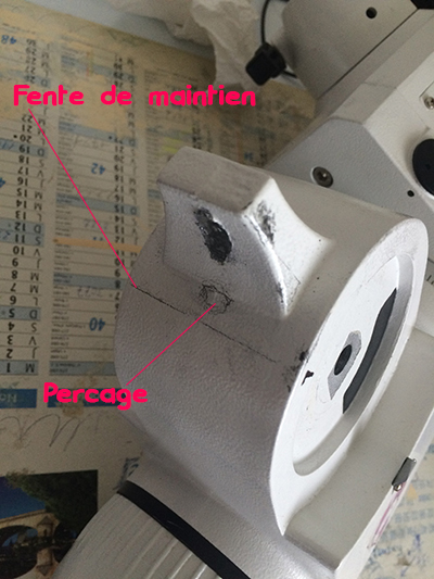 En observant la conception du réglage d'altitude, on se rend compte que la visse de rélage qui vient pousser sur la buté d'altitude peu prendre, en fonction de la latitude, un angle d'attaque trop important, qui a pour conséquence de rendre très difficile la poussé et de tordre la visse. Cette monture n'est donc pas adapté aux latitudes supérieur à 30° environ. Problème, en Bretagne, je suis à 48°!
